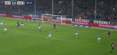 第9分钟,贝萨传球,皮亚特克的远射偏出右门柱外。两分钟后,阿兰妙传,因西涅的远射击中左门柱弹出。第20分钟,罗慕洛的传中制造机会,夸梅小禁区内头球攻门命中左下角,热那亚1比0领先那不勒斯。