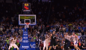 开场后不久,巴特勒就接到大帝的助攻完成高难度拉杆上篮,拿到了76人生涯首分。