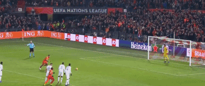 第95分钟,弗兰基-德容禁区内被穆萨-西索科放倒,主裁判判罚了点球。随后德佩操刀主罚命中,荷兰2比0击败法国。