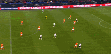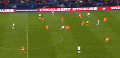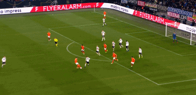 第85分钟,荷兰队在德国禁区腹地连续传递,普罗梅斯原地摆腿,兜出一脚完美弧线,诺伊尔扑救不及,1-2,荷兰追回一球。第87分钟,德国左路快速传切,罗伊斯右脚外脚背妙传,克雷尔在远端迎球低射偏出。