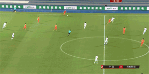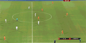 双方中场抢作一团,最终仍是国足队员失误,把球传到对手脚下