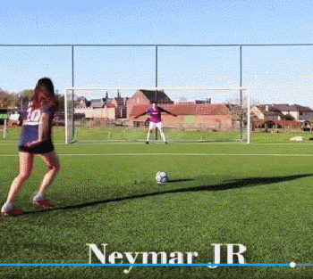 ▌晚聚焦:长腿尤物模仿球星踢点球,看到内马尔时笑了