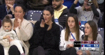 肯达尔和西帝甜蜜的小两口,今天在比赛中公然秀起了恩爱,转播镜头也特别会搞事,只要西蒙斯奉献精彩的镜头,下一个镜头永远都是詹娜为自己男朋友鼓掌的画面。