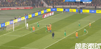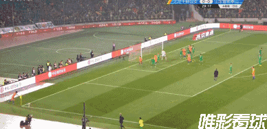 第56分钟,鲁能前场右侧定位球开出,禁区中路的刘洋高高跃起头球攻门,侯森做出神奇扑救。