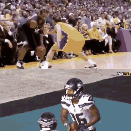 今天西雅图海鹰队在客场30比27击败了卡罗来纳黑豹队。海鹰队外接手泰勒-洛克特和队友大卫-摩尔在庆祝达阵的时候复刻了2001年总决赛艾弗森跨越泰伦-卢的经典一幕。