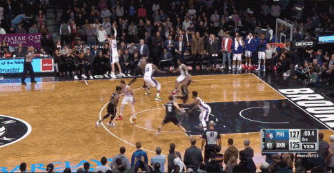 客场面对篮网,JB在球队落后1分的情况下主打最后一攻,把时间压到快走完,后撤步三分出手!Boom!命中!最后0.4秒巴特勒帮助76人以127-125反超!
