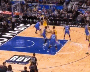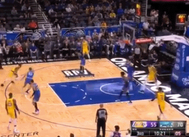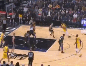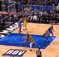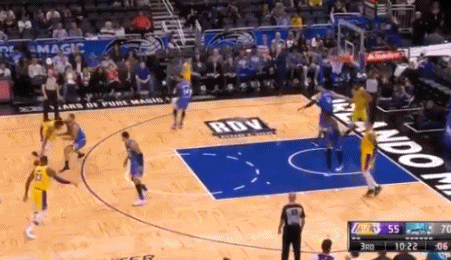 这一球,他利用突破的威胁使得防守队员后退限制他的突破。这就给了他空间以命中中距离投篮。武切维奇在这样的情况下就处在前面所说的,到底是放他突还是让他投的选择难题中。你有多样化的得分能力,对手才会有所重视。