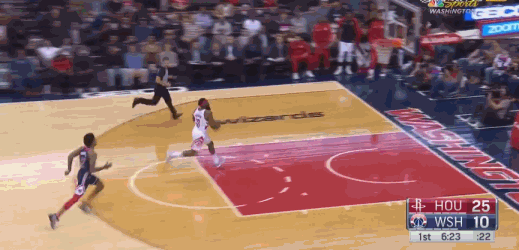 火箭客场挑战奇才,首节哈登完成了一记一条龙暴扣,暴扣完成之后哈登作出了一个假装擦鼻血的庆祝动作。自从今年开始,哈登在扣篮之后经常会做出这个动作,2K19还将这个庆祝动作收录到游戏之中。据说哈登的这个庆祝动作的寓意是跳得太高,篮筐撞到鼻子了。。。