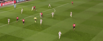 首先我们来看看费莱尼的这粒进球,在比赛进行至第91分钟的时候,曼联罚出边线球之后,卢克肖左路长传,大禁区弧顶处,卢卡库头球后蹭,费莱尼在禁区内得球后转身直接起脚打门,皮球应声入网。