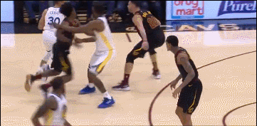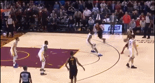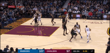 第二节结束前打进了一记精彩的0.5秒进攻配合,勇士半场落后骑士6分。