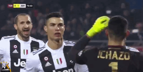 而在C罗进球后庆祝时却发生了一个小插曲,C罗因为撞对方门将吃到黄牌。而从视频回放看,都灵门将一开始双手举起示意着什么,基耶利尼以及博努奇也非常的严肃,C罗更是一脸铁青。