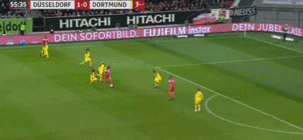 上周中德甲联赛第16轮,领头羊多特蒙德做客升班马杜塞尔多夫。这场比赛,爆冷大冷门,大黄蜂1-2落败。比赛进行至第56分钟,杜尔塞多夫打进了一粒精彩的进球,宇佐美贵史前场左路带球内切吸引多名多特蒙德防守队员注意力后送出横传,大禁区前右侧没有多特的防守队员齐默得球后不停球直接射门,皮球犹如炮弹一样飞入球门左上角,这个进球让多特蒙德客场0-2落后。
