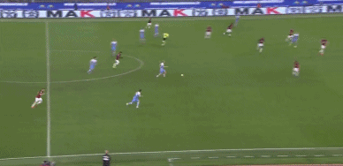 第89分钟,米兰错过绝好机会,博里尼禁区右路倒钩传中,皮亚特克后点近距离头球攻门却顶高!