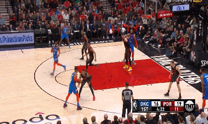雷霆(40-25):威斯布鲁克37分7篮板3助攻、乔治32分14篮板6助攻3抢断、格兰特14分6篮板、施罗德14分4篮板4助攻、亚当斯12分7篮板2抢断2盖帽、