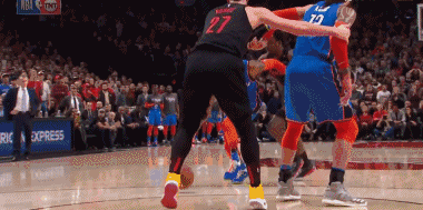 终场前26秒,两队拼抢篮板,利拉德的左手有一个推搡威斯布鲁克的动作,裁判漏吹。