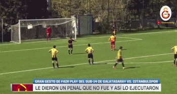 在土耳其一场青年足球比赛上,14岁的少年球员福勒故意踢飞了点球,原因是对手球员只是打滑顺势把他撂倒而并非故意犯规。