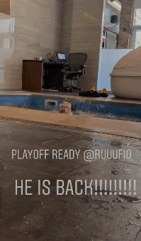 爵士球员多诺万-米切尔今日在Instagram上发布了一段队友里基-卢比奥在泳池中训练的视频。