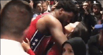在今天76人抢七憾负猛龙后,恩比德女友在赛后上前献吻安慰男友,给不少看球的单身狗喂了一把狗粮。
