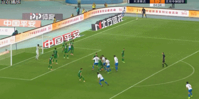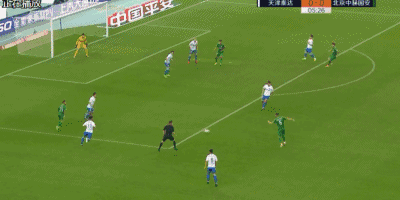 第42分钟,国安获得前场右侧定位球,奥古斯托任意球开到后点,张稀哲包抄小角度抽射打偏。