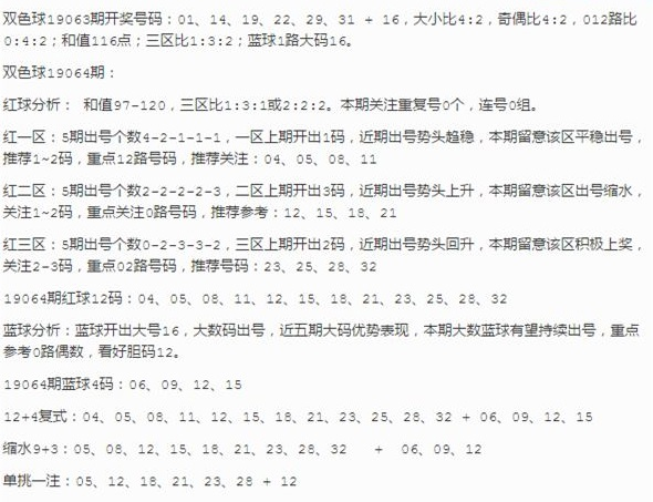 2019064期双色球 以亦推荐红二区胆12 18 21