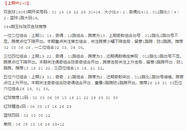 2019064期双色球 玉玲珑推荐五六位02路组合