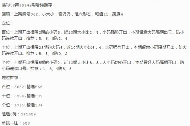 福彩3D19149期福禄寿喜推荐:上期中组选