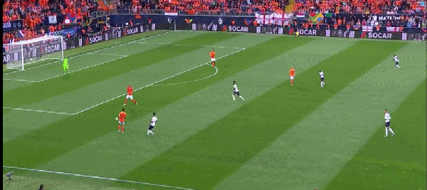 第37分钟,德里赫特再次出现了狼狈的防守,他在防守英格兰的桑乔时被穿裆过掉,这打乱了荷兰的整个防守布置,桑乔直塞找到处于单刀位置的拉什福德,也就是拉什福德射门动作太慢给了荷兰后卫补防的机会。下半场英格兰的首次有威胁进攻还是和德里赫特有关:第54分钟,德尔夫左路传中,德里赫特冒顶,桑乔小禁区线上头球攻门,西莱森神勇扑出。