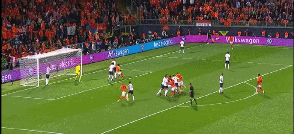 在一连串反面的“耀眼”表现后,第73分钟德里赫特终于有了正面的耀眼表现:德佩开出右侧角球,德里赫特以泰山压顶之势力压斯通斯在6码处头球破门,为荷兰扳平了比分,他将功补过。