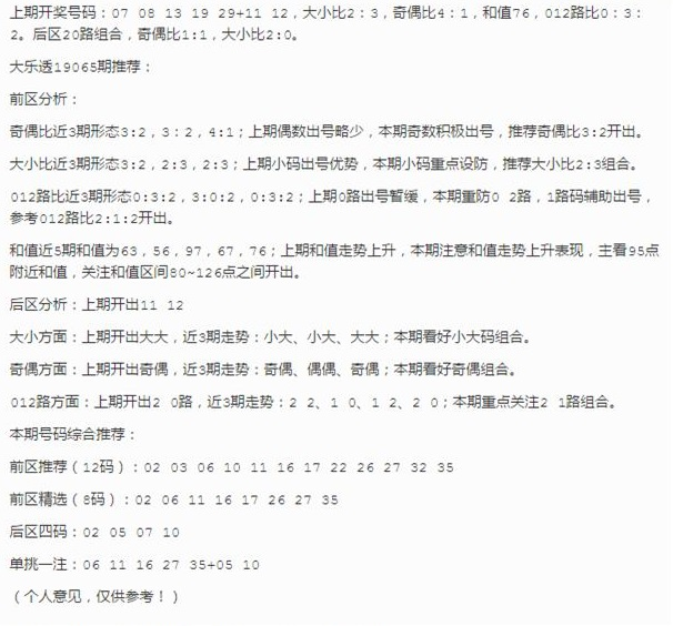 大乐透2019065期推荐