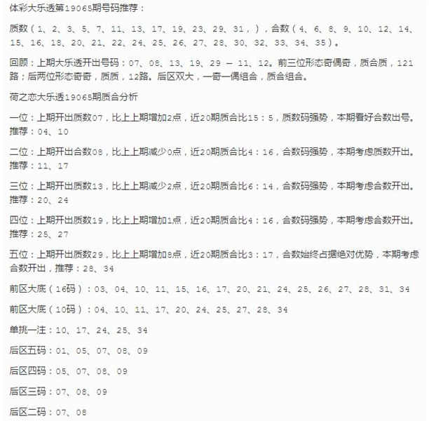 2019065期大乐透 荷之恋质合分析