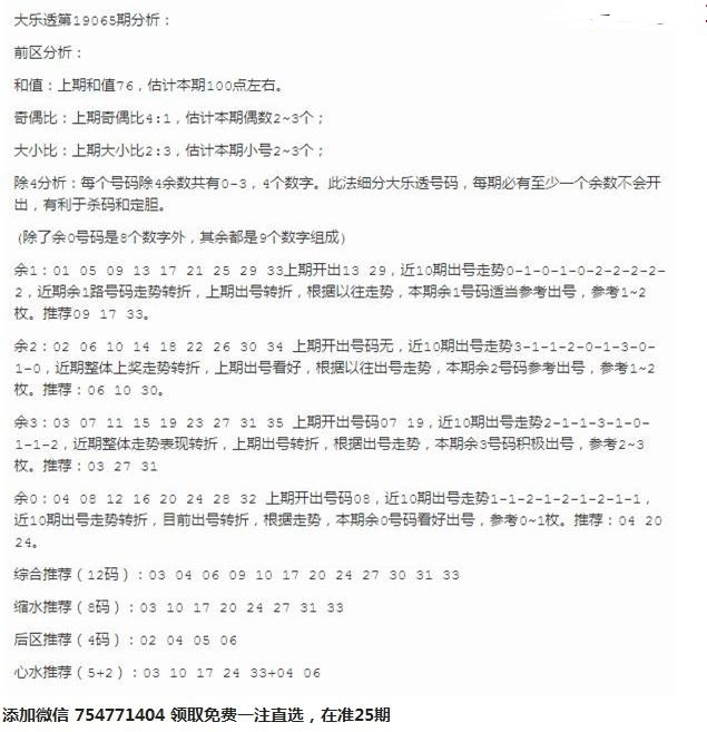 19年超级大乐透第065期 尉迟静预测除4余1看09 17 33