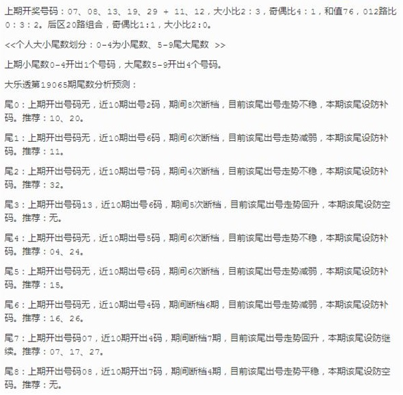 2019065期大乐透 澜色尾数分析预测