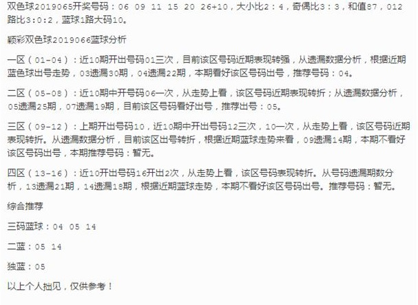 双色球2019066期推荐
