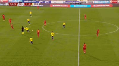 这一幕,出现在比赛第37分钟时,当时比分仍然是0-0。德布劳内禁区右侧护住皮球后横传中路,卢卡库包抄到位来到了小禁区中路。在卢卡库和球门之间,只有苏格兰门将。只要卢卡库完成射门,进球可能性就非常大。