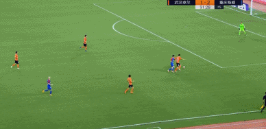 第69分钟,梅泽耶夫斯基禁区右侧带球晃开协防的刘毅后送出传中,门前的卡尔德克一记头球攻门进球得分!主裁判在观看完VAR视频回放后认定此球有效,1-2!重庆将场上比分逆转!