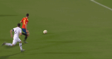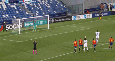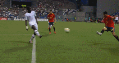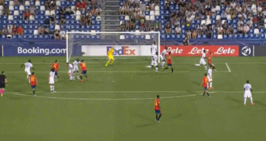 在上半场结束前,西班牙通过点球反超比分。科内特禁区内踩到了奥亚萨瓦尔脚跟,奥亚萨瓦尔亲自操刀点球左脚低射近角破门。2-1,西班牙在上半场领先。