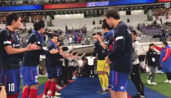 为此,东京FC十分人性化地为这位小将举办了一场盛大的送别庆典。比赛结束后,身穿白色衬衣的久保建英在一众前队友的列队下欢送其入场,冒着细雨,东京FC的球员为久保建英列队鼓掌欢迎,还为他送上鲜花,久保建英也礼貌地鞠躬表达感谢。
