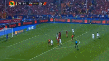 36分钟时,埃及头号球星萨拉赫完成了一记无解任意球。在右侧禁区前,萨拉赫用左脚搓出了一记完美弧线球。皮球在越过人墙头顶后开始下旋,尽管乌干达门将飞身用指尖触碰到了皮球,但皮球仍然飞入了近角。