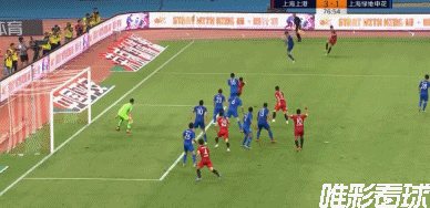 第15分钟,上港长传球给到进去右侧,张卫的头球摆渡给到中路,杨世元的头球攻门高出横梁。
