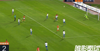 第50分钟,鲁能界外球掷出,格德斯回做一下,外围右侧王彤传中,佩莱头球攻门被张烈没收。