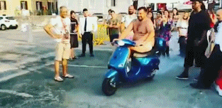在金钱的诱惑下,该男子全身只穿一条内裤,骑着蓝色摩托车一头撞进了大海里。巴神在自己的ins上转发了这段视频,很快引来了疯狂的转发。