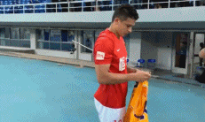 对于场边扔来的一件NBA球队湖人队的23号球衣,埃尔克森丝毫没有犹豫,拿到手后立马就签名了,此举也引起了球迷的好奇。