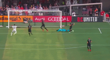 在第32分钟时,革命队将领先优势改写为2-0。在接到队友右路传中后,阿古德罗后点头球射门。这个射门角度相对较正,但华盛顿联队门将哈米德没有用手扑救,反而挺着肚子勉强将球挡出,结果吉尔迅速补射破门。