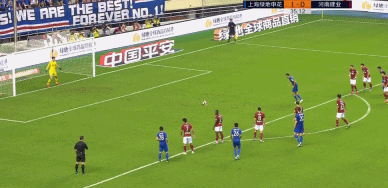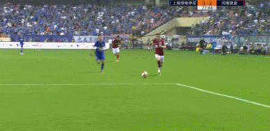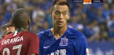 半场比赛结束,上海申花2-2河南建业。