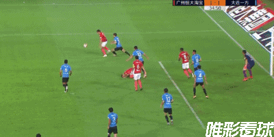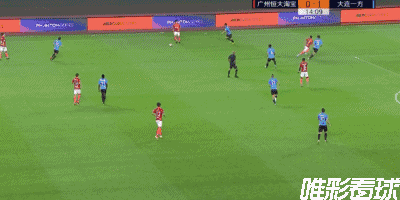 第27分钟,恒大扳平比分,韦世豪禁区右侧做给右路的杨立瑜,杨立瑜不停球直接给到禁区中路,保利尼奥插上领球摆脱防守,近距离的推射打穿张翀小门入网,恒大1-1一方。