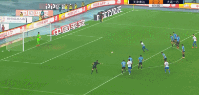 第86分钟,赵宏略左路下底传中,瓦格纳门前头球冲顶被张翀神奇扑出底线。
