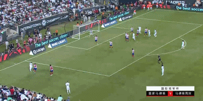 第72分钟,小罗德里戈前场右路送出传中给到禁区,门前的贝尔一记头球攻门将球顶高。