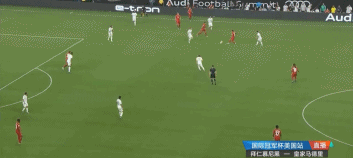 拜仁的第一粒进球正是通过从右到左的配合,在这个过程中皇马球员的站位、防守职责是非常混乱的,尤其当马塞洛冲上去保护小禁区时,克罗斯完全没有保护后点的意识,他站在原地观看了托利索完成射门,又补射破门。