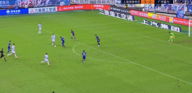 第13分钟,申花前场连续传递,曹赟定左路斜长传禁区,莫雷诺插上胸部停球顺势扫射破门,1-1,申花扳平比分。
