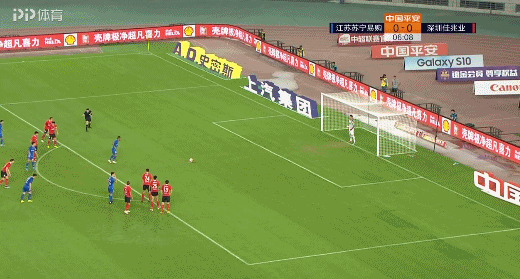 第4分钟,苏宁获得前场右路定位球机会,张凌峰开出定位球到禁区,深足球员王鹏禁区内左手臂触碰皮球,裁判第一时间果断给了点球。经过与VAR沟通后,裁判坚持判罚,特谢拉主罚稳稳命中,苏宁1-0主场领先深圳。